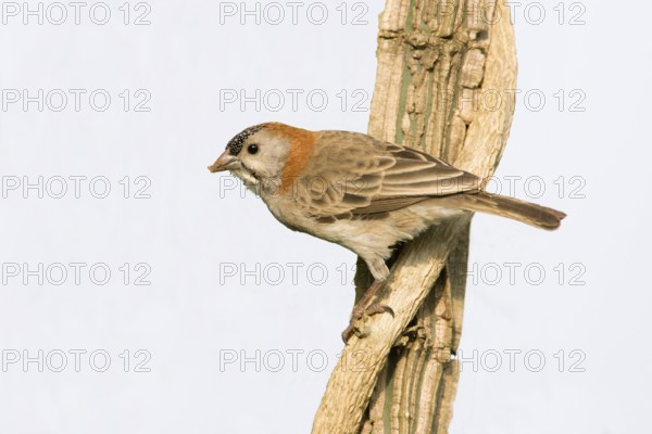 Schuppenkopfweber (Sporopipes frontalis) perched on a branch, Uganda, Africa