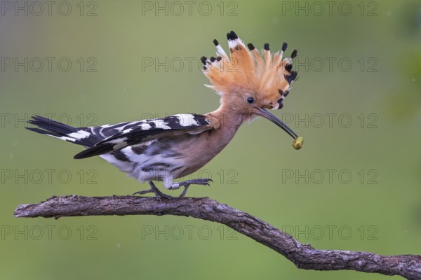 Eurasian Hoopoe (Upupa epops) with food in its beak, Saxony-Anhalt, Germany, Europe
