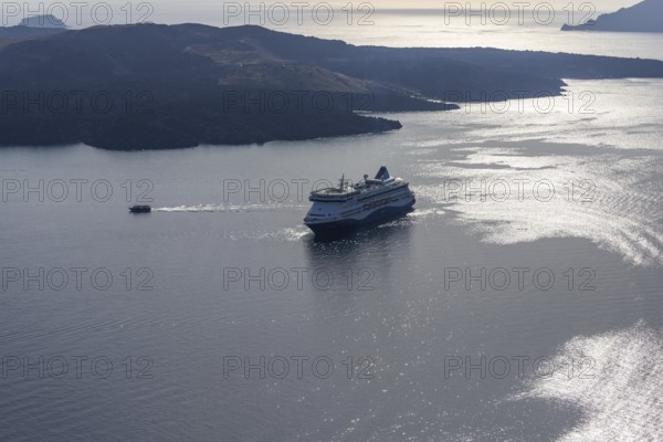 Cruise ship in the archipelago of Santorini, view from Fira, island of Santorini, Cyclades, Greece, Europe