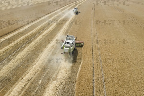 Combine harvester working on a wheat field. Combine harvester Aerial view