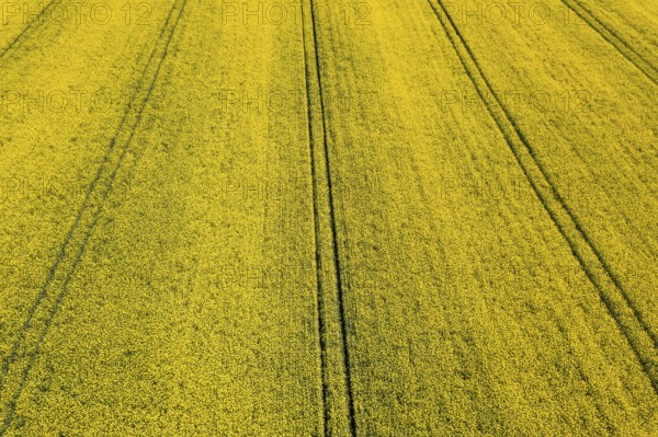 Aerial view of yellow rapeseed field. Aerial view agricultural fields
