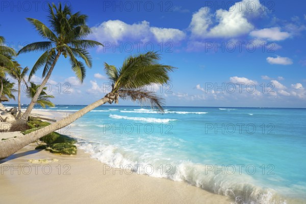 Playa del Carmen beach palm trees in Riviera Maya Caribbean of Mexico