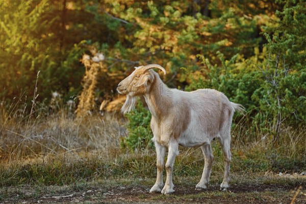 Domestic Goat with Horns (Capra Aegagrus Hircus) Yagodina, Devin, Bulgaria, Europe