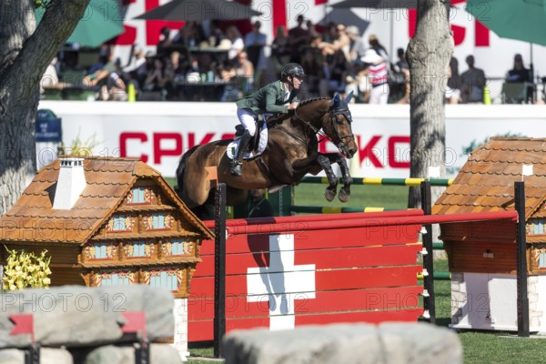 Michael Pender of Ireland, riding HHS Calais competes in the BMO Nations Cup during the CSIO Spruce Meadows, Masters, in Calgary, Alberta, Canada, North America
