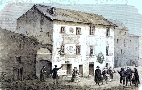 The house where Christopher Columbus was born in Cogoletto, Genoa, Italy, woodcut from 1864, Europe