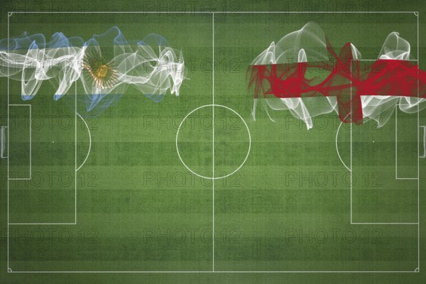 Argentina vs England Soccer Match, national colors, national flags, soccer field, football game, Competition concept, Copy space