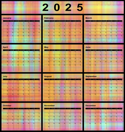 2025 calendar, week start Sunday, modern design