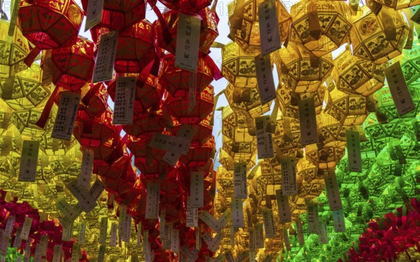 Close up of many colorful and beautiful paper lanterns. The festival celebrate the birthday of Buddha in South Korea