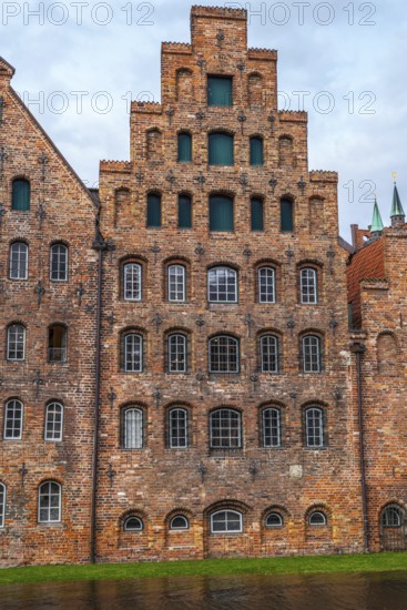 Historic buildings in Lübeck Warehouses at the harbour are a popular and famous sight made of red brick, Historic buildings in Lübeck at the harbour, famous and old with red brickstones