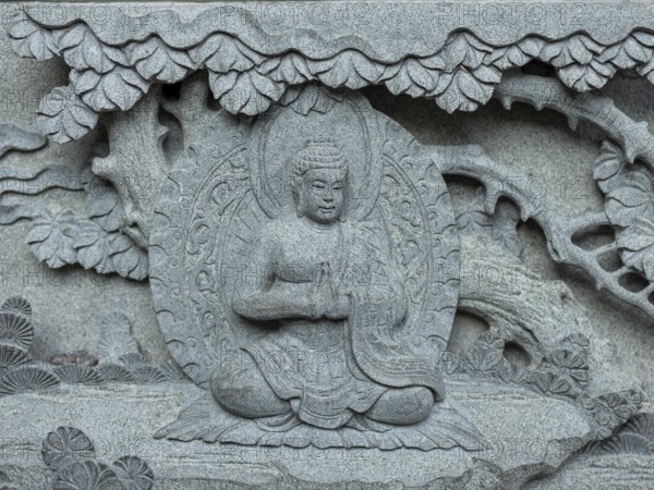 Wall relief depicting Buddha, Kek Lok Si Temple, George Town, Penang, Malaysia, Southeast Asia, Asia