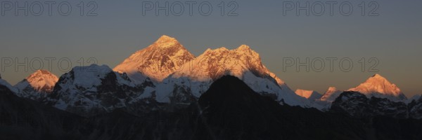 Top of the world at sunset. Mount Everest and other high mountains, Nepal, Asia