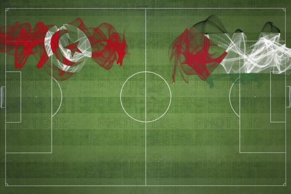 Tunisia vs Palestine Soccer Match, national colors, national flags, soccer field, football game, Competition concept, Copy space