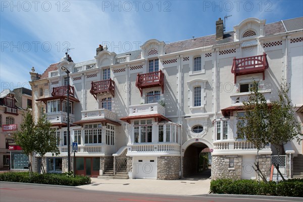 France, Hauts de France region, Pas de Calais, Côte d'Opale, Le Touquet Paris Plage, Boulevard Daloz, angle of a street and avenue Saint Jean,