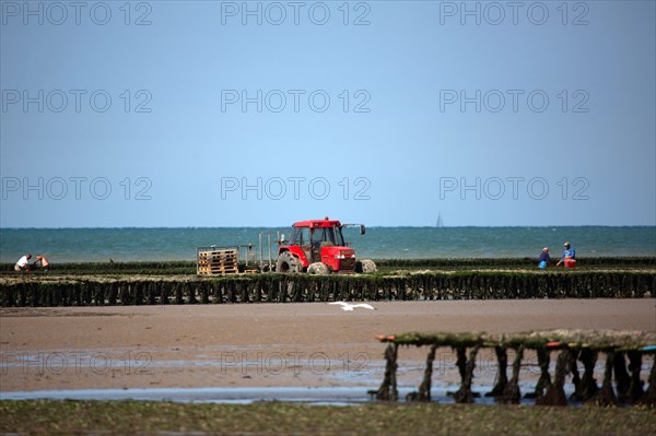 France, Normandy region, Calvados, Bessin, Côte de nacre, landing beaches, Asnelles sur Mer, oyster farming, oyster farming, oyster parks,