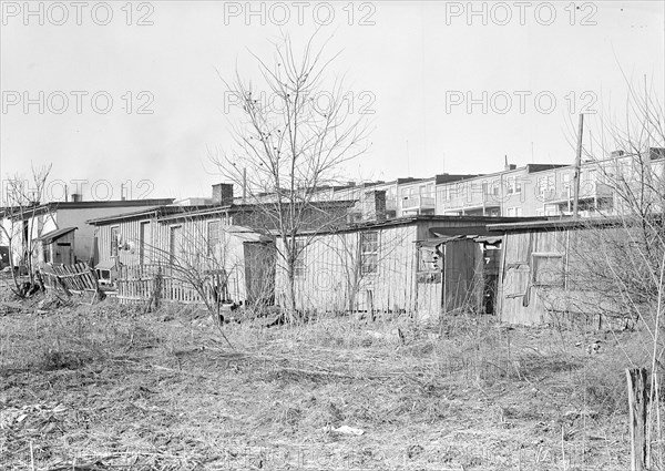 Lancaster, Pennsylvania - Housing. Barney Google Row (street not to be found on city map) - settlement in which live many poor inhabitants of city including some silk and linoleum workers - behind it can be seen the backs of expensive houses on Duke Street, 1936, Lewis Hine, 1874 - 1940, was an American photographer, who used his camera as a tool for social reform. US,USA