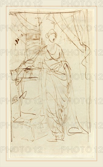George Romney, British (1734-1802), An Elegant Lady in Classical Dress [recto], 1780s, pen and brown ink on laid paper