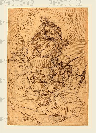 Giovanni Battista Paggi, Italian (1554-1627), The Madonna and Child in Glory Adored by Saints, pen and brown ink over black chalk, on buff laid paper