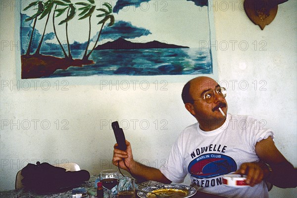 New-Caledonia, 1988. The writer and journalist ADG (initials of the pseudonym Alain Dreux-Gallou, his real name Alain Fournier known as Camille, or Alain Camille) in his villa in Mont-Dore.