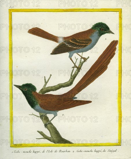 Malagasy Paradise Flycatcher and Blue-mantled Crested Flycatcher