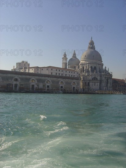 Venise Salute Eglise de la Salute et pointe de la Douane (Dogana) sur le Grand Canal, soleil d'hiver