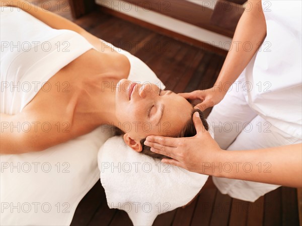 Woman getting facial massage in spa. Photo : Yuri Arcurs