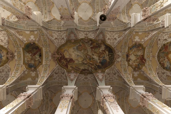 Vaulted ceiling with frescos by the Asam brothers, Heilig-Geist-Kirche, 1724/30 baroque style church, Munich, Bavaria, Upper Bavaria, Germany, Europe