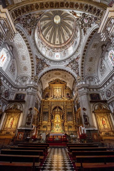 Church, interior, chancel, gold and ornate ceiling, Parroquia de Santos Justo y Pastor, Granada, Andalusia, Spain, Europe
