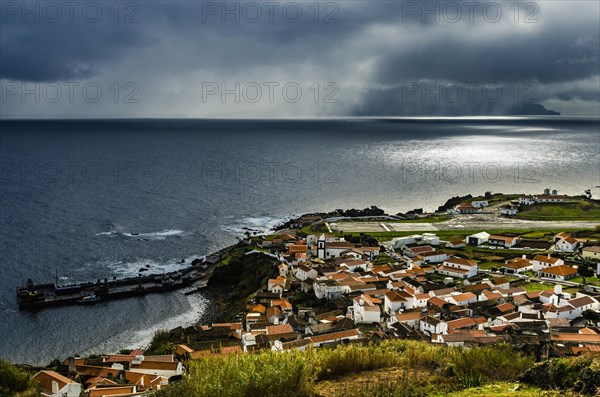 Vila do Corvo, in the back Flores Island, Corvo Island, Azores, Portugal, Europe