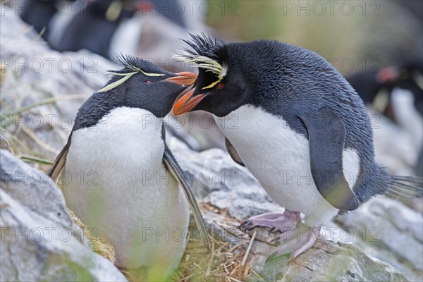 Rockhopper penguins (Eudyptes chrysocome), Falkland Islands, South Atlantic, South America