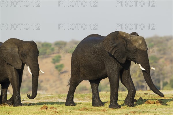 African Elephant (Loxodonta africana), two females with wet skins have been crossing the Chobe River, Chobe National Park, Botswana, Africa