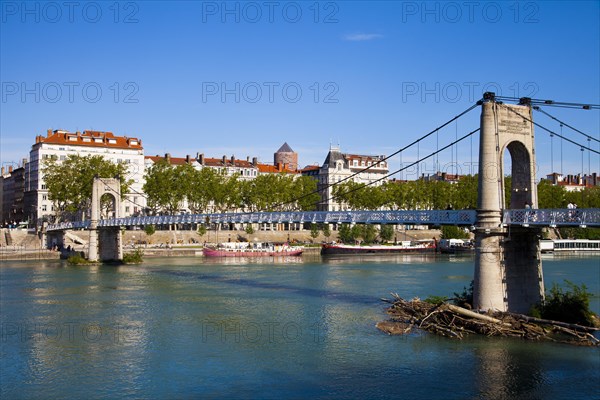 Gateway College bridge, Rhone river, Lyon, Rhone-Alpes, France, Europe