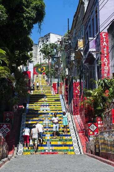 Escadaria Selaron steps in Lapa, Rio de Janeiro, Brazil, South America