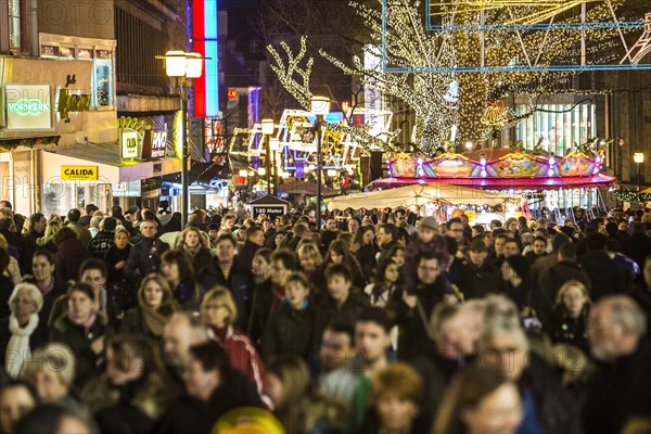 Crowds thronging between stores and Christmas market stalls, pedestrian street in the centre of Essen, Kettwiger Strasse, Essen, North Rhine-Westphalia, Germany, Europe