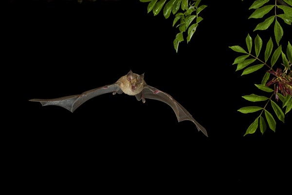 Greater Horseshoe Bat (Rhinolophus ferrumequinum) in flight