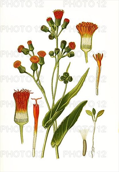 Emilia sagittata, Emilia fosbergii, Scarlet cacalia, Florida tasselflower, Flower, Plant, Historic, digitally restored reproduction of a 19th century original
