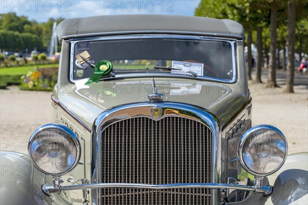 Classic car Roehr 8 F 13 Glaeser Cabriolet, Germany 1935, 8-cylinder, 3. 287 ccm, 75 hp, 4-speed, 1. 650 kg, 125 km h, grey, detail view, Classic Gala, International Concours d'Elegance, Schwetzingen, Germany, Europe
