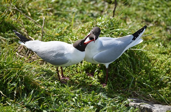 Black-headed Gulls (Chroicocephalus ridibundus) mating, Schleswig-Holstein, Germany, Europe