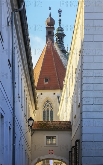 Piaristengasse and Piaristenkirche, Old Town Krems an der Donau, Lower Austria, Austria, Europe