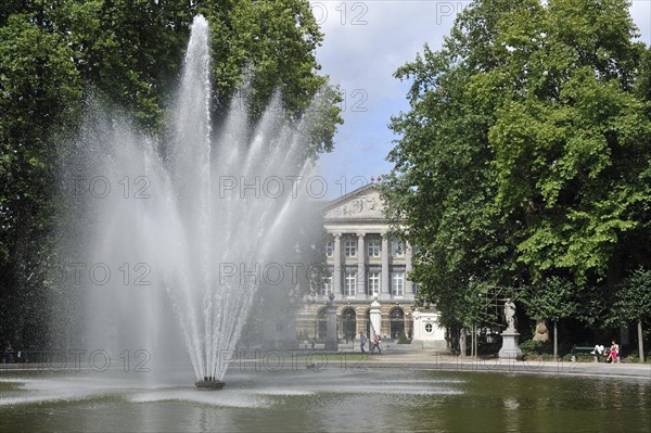 Fountain at the Parc de Bruxelles, Warandepark and the Belgian parliament, Palace of the Nation, Brussels, Belgium, Europe