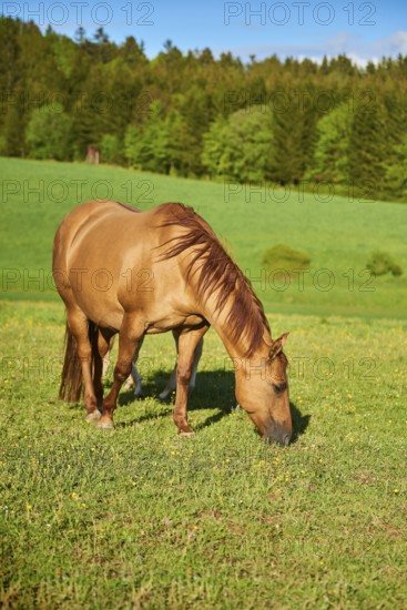 American Quarter Horse on a meadow, Bavaria, Germany, Europe