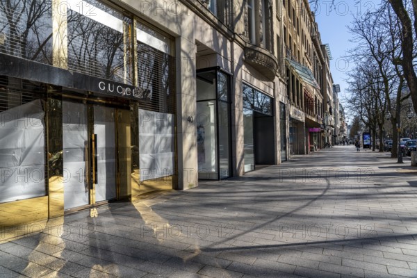 Empty Königsallee, Kö, empty city centre, shopping street, effects of the coronavirus pandemic in Germany, Düsseldorf