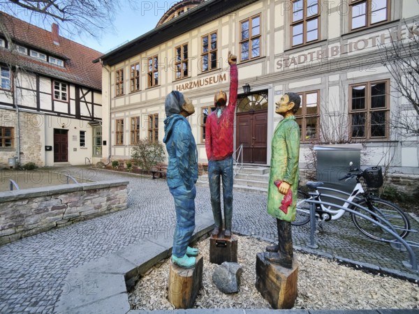 Artwork entitled Himmelsgucker by Sylvia Itzen in front of the Harz Museum in Werningerode, Saxony-Anhalt, Germany, Europe