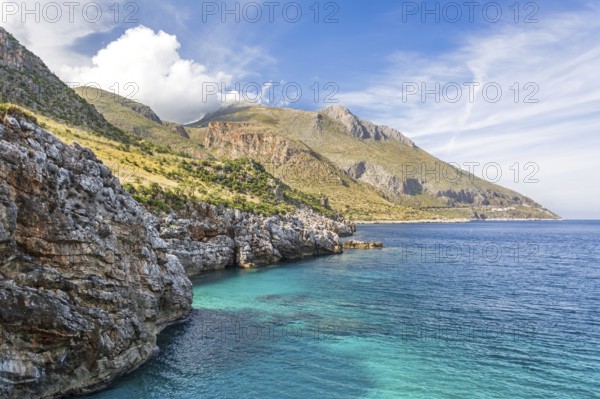 Beautiful hilly Mediterranean coastline with turquoise water