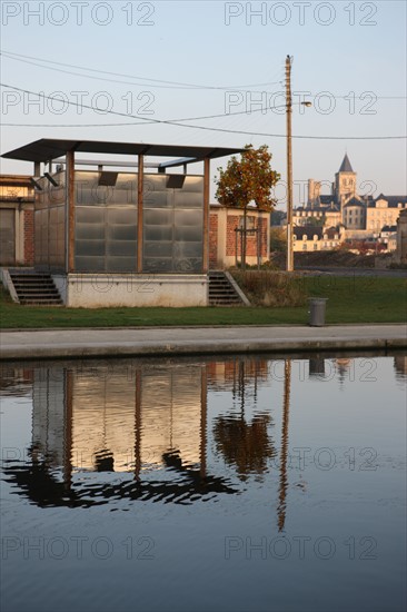 France: Normandie, calvados, caen, canal, ancienne zone portuaire, batiments industriels, nouveau quartier, reflets dans l'eau,