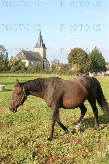France, Basse Normandie, orne, pays d'auge ornais, randonnee a cheval autour de Medavy et de son chateau