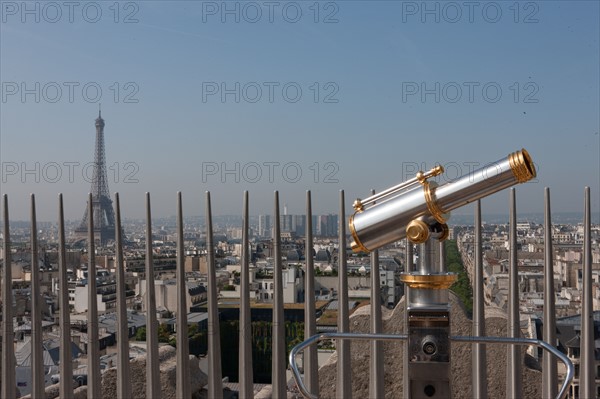France, Region Ile de France, Paris 8e arrondissement, place Charles de Gaulle, place de l'Etoile, au sommet de l'Arc de Triomphe, panorama