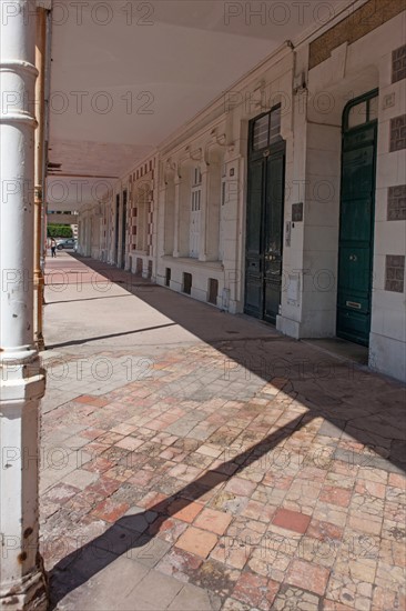 france, region normandie, calvados, cote fleurie, deauville, sous les arcades de la rue du general de gaulle, colonnes,