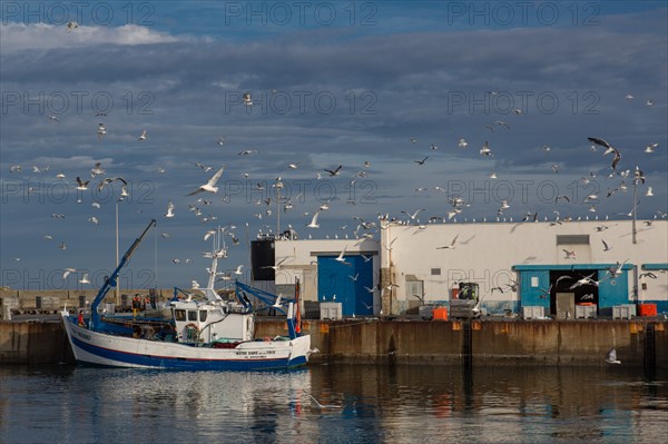 France, Région Bretagne, Finistère Sud, pays bigouden, Pointe de Penmarc'h, Saint-Guénolé, arrivée des chalutiers au port, sardines,