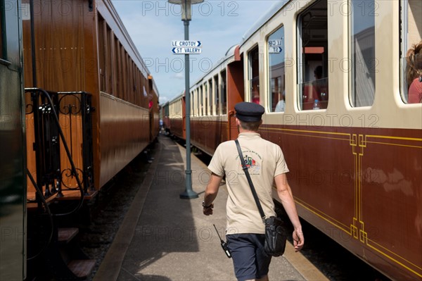 France, Région Hauts de France, Picardie, Baie de Somme, Somme, petit train de la Baie de Somme entre Saint Valery sur Somme et Le Crotoy