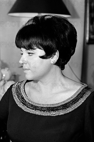 La chanteuse Régine posant dans son appartement, situé quartier Montparnasse (probablement) à Paris.